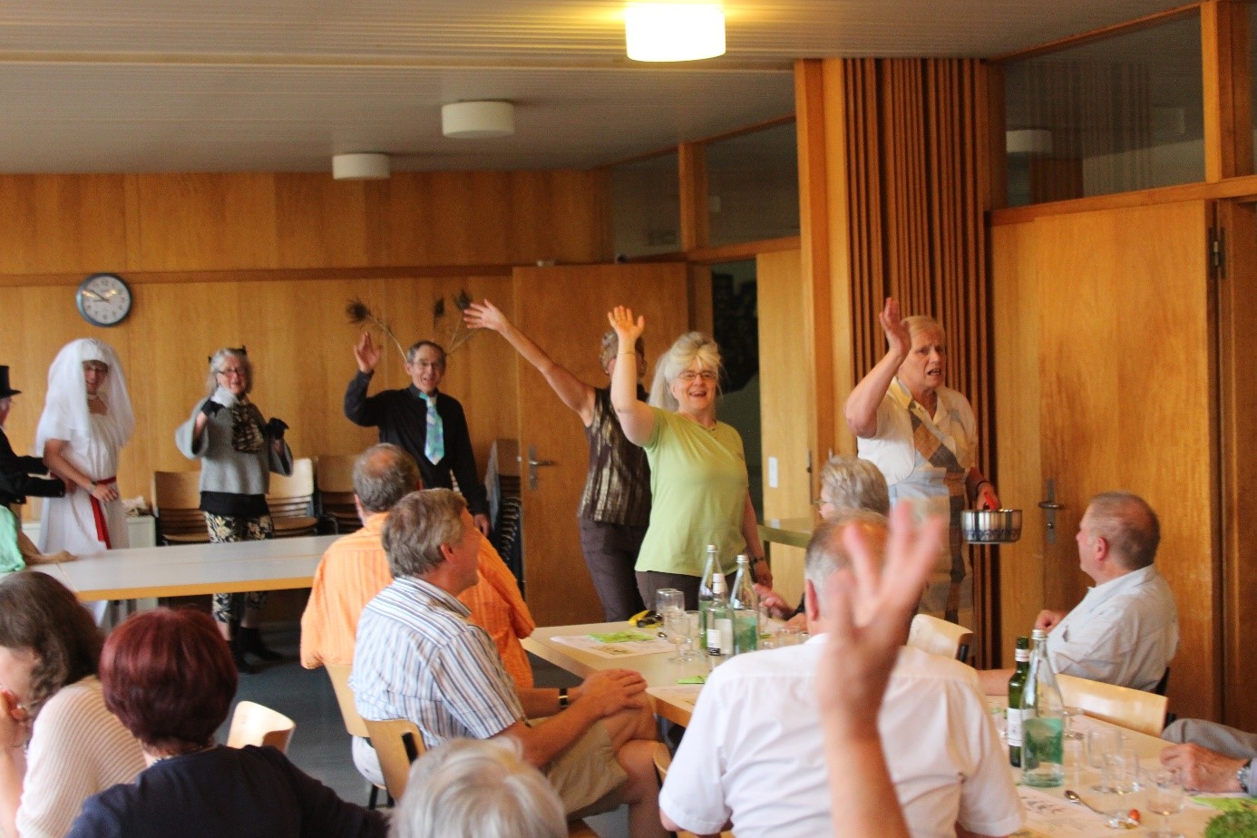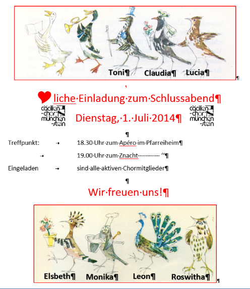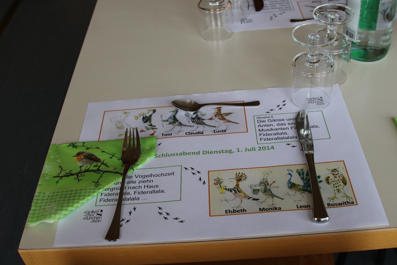 Nun ist die Vogelhochzeit aus und alle ziehn vergnügt nach Haus, fidi …